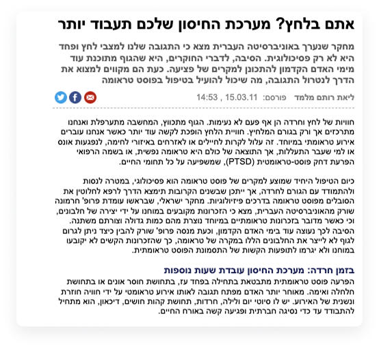 יש אנשים שממש נבהלים, מפלס החרדה והלחץ עולה וזה מאוד משפיע על הגוף שלנו.