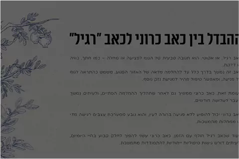אם נעשה חישוב פשוט, כמעט כל בן אדם שני בישראל סובל או סבל מכאב כרוני כזה או אחר במהלך החיים שלו.