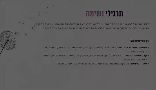 דמיון מודרך או נשימות. הכל מוסבר בצורה ברורה, עם הדרכה צעד אחר צעד.
